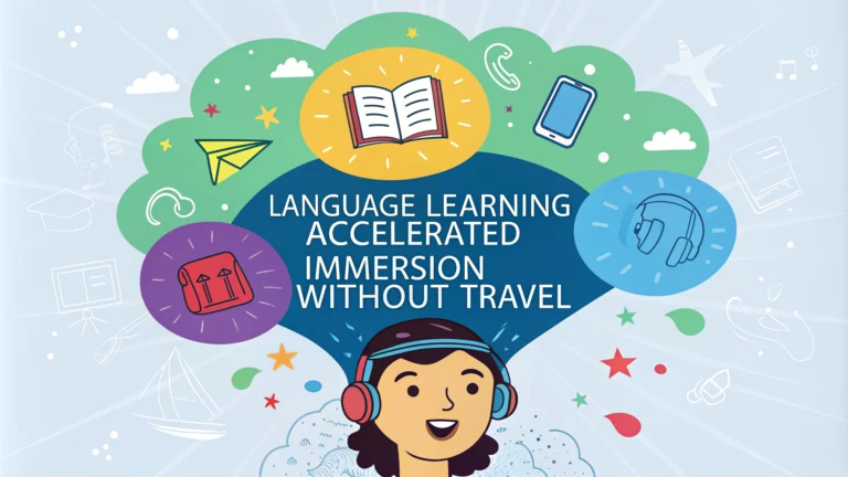 Language immersion without travel involves creating an environment rich in your target language through digital content, online interactions, virtual reality, podcasts, media consumption, and language exchange apps while staying in your home country. -